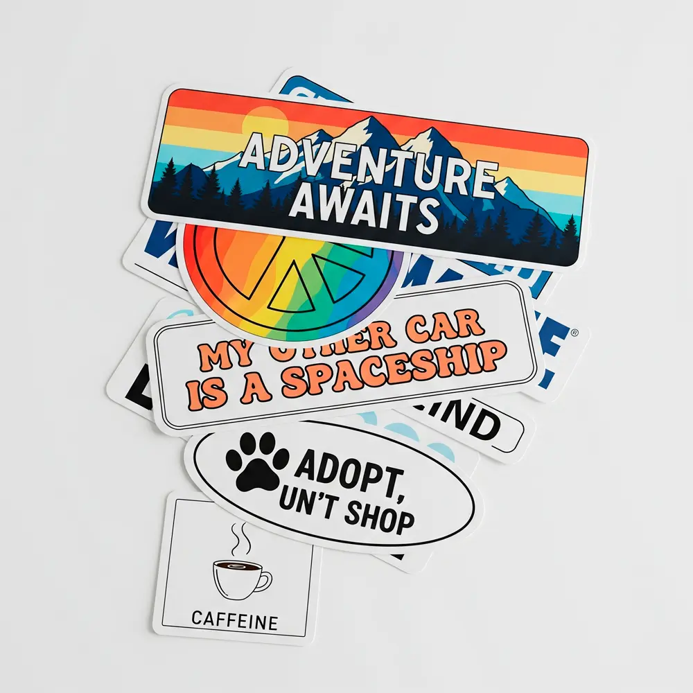 Whether you want a bold, full-color design, a simple, elegant message, or your logo in a specific shape, you can create your sticker in any form or color. It’s the easiest marketing tool that moves with you, ensuring your message reaches more people wherever you go. you can also use our Die Cut Stickers