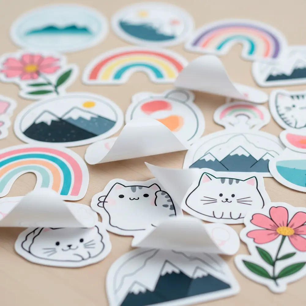 Custom kiss cut stickers offer you the best of both worlds: the ease of use of a sticker sheet and the clean look of an individual sticker. Unlike traditional die-cut stickers, these are cut with a precise blade that cuts through the vinyl layer but leaves the backing paper intact. This allows the sticker to peel away easily and cleanly, leaving a border around your design. Need help whit the sizes?